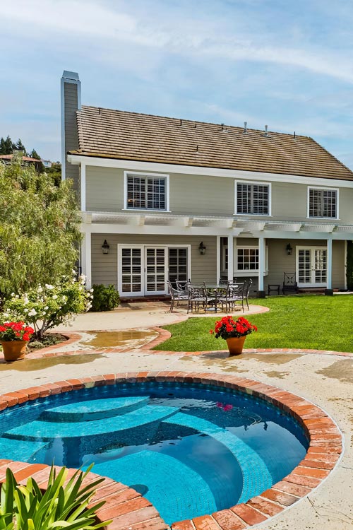 This beautiful, custom built traditional home with serene mountain views is located in the hills of Pacific Palisades Highlands. A soaring two story entry hall welcomes you into a light filled and spacious step down living room with a brick fireplace. There is an adjacent dining room making this space perfect for formal entertaining. The recently remodeled kitchen has marble counter tops, Viking appliances, including professional ovens, a center island and breakfast bar that opens to a lovely family room with fireplace. The family room opens out to an inviting patio area with a large grassy backyard and a spa. Completing the downstairs is a powder room and a laundry room with great additional cabinet space. Upstairs there are four bedrooms and three bathrooms. The primary bedroom suite has a beautiful new bathroom with a separate tub and shower, double vanity and a large walk in closet and bonus area. There is a secondary bedroom suite with an updated bathroom and two additional light filled bedrooms that share a newly remodeled bathroom. Gleaming wood floors and plantation shutters complete this delightful and immaculate home. Perfect for enjoying the California lifestyle.